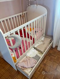 Vendo culla Ikea Gonatt con: - materasso Jätterött (rigido, con molle insacchettate); - piumino; - lenzuola copri materasso e copri piumino; No cuscino. Usato pochissimo, pari al nuovo. Vendo smontato. Piu bilancia neonato chicco
