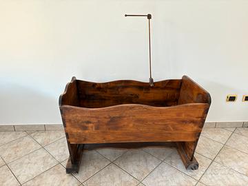 Culla in legno, fatta a mano, con rotelle e possibilità di dondolare (due pezzi in più). Porta carillon incluso. Consegna a mano. No spedizione.