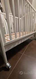 Vendo culla in legno unisex della Erbesi modello Mirtillo completa: con cassettone portaoggetti, spalliere regolabili in altezza, disegni orsetti in rilievo, 4 ruote orientabili e materasso ortopedico per neonati