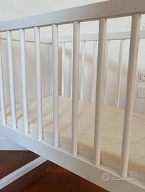 Le sue dimensioni ridotte, le ruote e il materasso incluso rendono questa piccola culla in legno il lettino perfetto per i neo genitori.