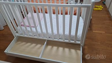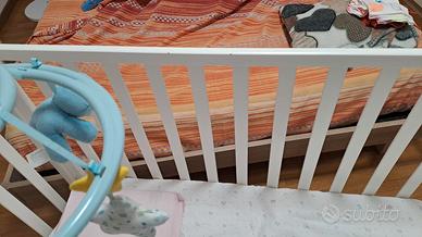 Culla in legno bianca Foppapedretti con disegni e metro misura bimbo.