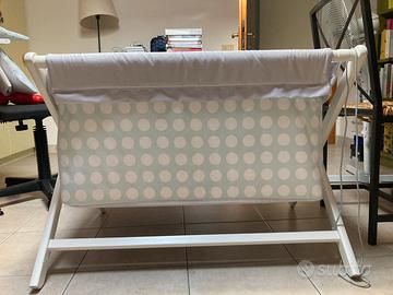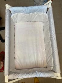 Culla per bambino, mai usata, in legno e stoffa. Con cuscino e coperta