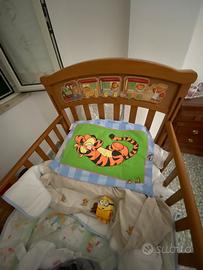 Culla in legno massello con materasso in ottime condizioni e sponde regolabili, regalo paracolpi.