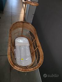 culla artigianale in midollino completa di materassino ancora imballato