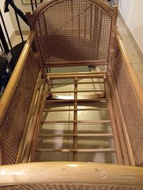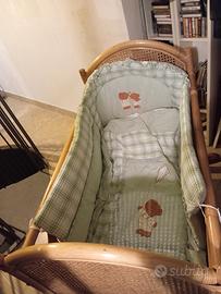 vendo bellissima culla da neonato in legno e rattan in ottime condizioni lunghezza 97 cm,altezza 96 cm compresi materasso,paracolpi e piumino