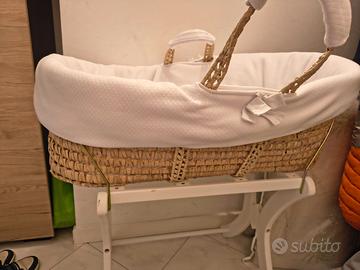 Vendo culla neonato in vimini con rivestimento completamente sfoderabile e materassino favolosa e comodissima con piedistallo ma si può anche staccare e trasportare a mano.Praticamente come nuova