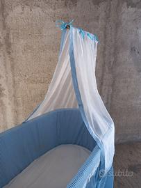 Vendesi culla in vimini con rivestimento fatto a mano come nuova.