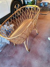 Vendo culla in vimini con ruote . Completa di materasso e copertura in stoffa fantasia bimbo. Presente capottina movibile con possibilità attacco retina antizanzare.