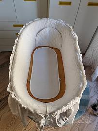 culla in vimini con rivestimento, materassino in gomma piuma e coprimaterasso antisoffoco