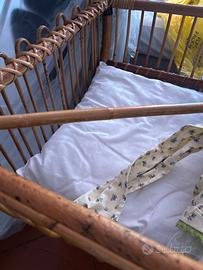 Completa di materasso e set tessile come da foto (forse un’altro bianco con inserimento nastro colorato)