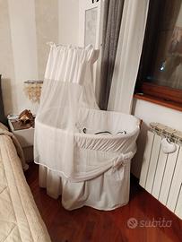 Vendo culla per bambini bellissima con ruote facile da trasportare da camera in camera vendo tutta completa unica pecca piccola bruciatura che si è creata nello sturare ma si trova dietro ed è molto nascosta completo di più minimo cuscinetto e copripiumino bianco e fodera cuscino