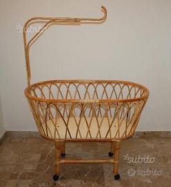 Robusta e raffinata culla neonato (Mod. Adriana) realizzata in vimini di Giunco chiaro.