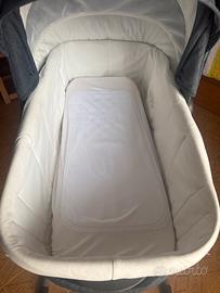 Vendo culla inglesina, reclinabile, con base che si puó anche staccare, capotta con protezione dal sole, colore jeans. Tenuta benissimo, come nuova.