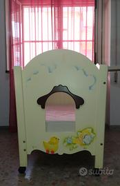 La culla è in perfette condizioni, ad essa è integrato il materassino, una giostrina e un velo "di protezione".