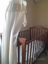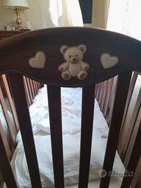 Vendo culla in legno Erbesi Brigette lettino noce anticato 6.18 con incluso Willy Traversa salvapipi per lettino 4.17, materassino Lusso Mis.125×60 H.13,