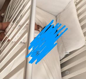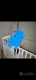 Vendo culla già smontata, nessun segno di usura, solo nella parte superiore c'è un piccolo segno che è dove poi c'era appeso il carillon. Il prezzo comprende la culla (che ha il cassetto giù) materasso, cuscino, paracolpi e piumone.