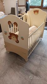 Vendo culla con cassetto e materasso, altezza 113 cm, larghezza 74 cm, lunghezza 130 cm, oblò in plexiglass, spondine regolabili e ruote