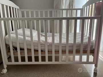 Vendo culla con sponde Azzurra Design in perfette condizioni, come nuova poiché praticamente mai usata. Sponda lettino regolabile così come le doghe, in legno. Le doghe sotto la testa possono essere sollevate per migliorare il sonno in caso di reflusso o raffreddore. Inoltre è presente anche il cassetto per riporre lenzuola e coperte. Nel prezzo è compreso il materasso e il cuscinetto sottile. Regalo due set di lenzuola e il salva materasso impermeabile.