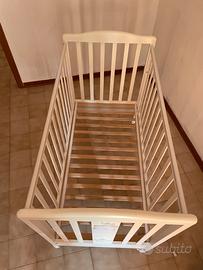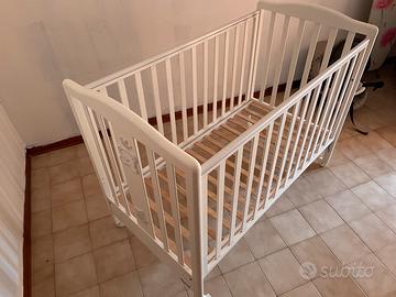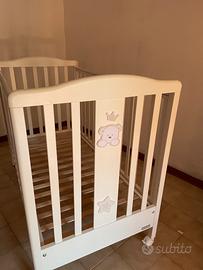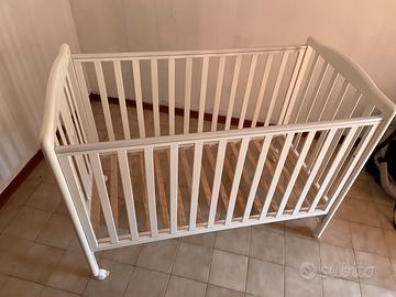 Culla/lettino bimbo in legno bianco con ruote