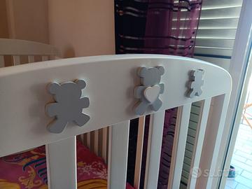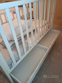 Culla lettino Brevi con cassetto completa di materasso,paracolpi, piumone e copripiumino.