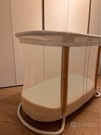 Compreso nel prezzo lenzuolino coprimaterasso originale in cotone organico, che si adatta perfettamente al materasso ovale in dotazione (si possono usare anche quelli rettangolari, ma con il suo si può rifare il letto con zero pieghe). Consegna a mano a Trento ed Affi.