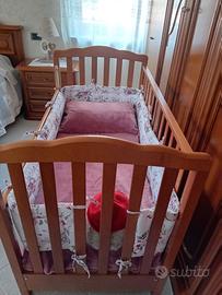 Vendo bellissima culla/lettino per neonato/bambino, tenuta in ottimo stato, come si può vedere dalle foto. Materiale: Legno massello con finitura color noce/miele . Design Classico, con sponde a griglia per garantire la sicurezza.