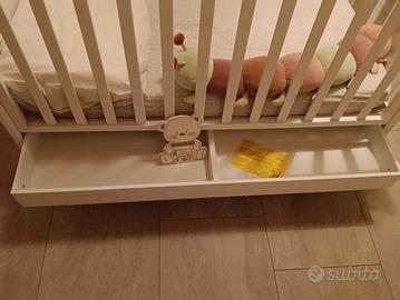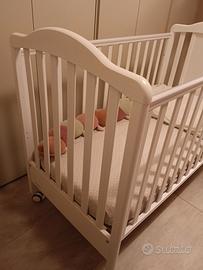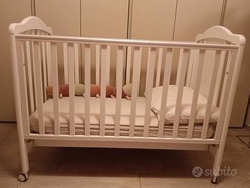 Come nuovo, in ottime condizioni, senza difetti, stesso modello identico ancora in vendita (acquistato personalmente in negozio 3 anni e mezzo fa) rivendo a metà del prezzo attuale. In struttura in faggio verniciato bianco (atossico) con spondine laterali mobili (rivestite con guaina antimorso) rete a doghe, cassetto capiente a 2 scomparti e ruote piroettanti con freno. Certificato EN 716 e prodotto in Italia. Dim. 130 * 105 * 70 cm. A disposizione per ulteriori fotografie, in regalo un po' di biancheria varia e materasso, se interessati . Per chi fosse interessato a fare la camerina completa, avrei anche il suo Como' coordinato, con tre cassetti (e eventuale fasciatoio), mod. Italbaby Mon Amour, sempre in ottime condizioni, in vendita in altro mio annuncio. Valuto richieste di offerte nel caso di acquisto di entrambi insieme ( in ogni modo il loro costo attuale sul mercato del nuovo e' il doppio circa )