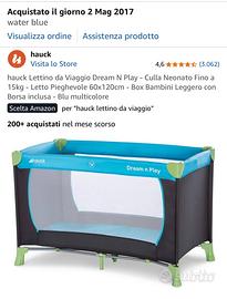 Vendo lettino da viaggio con materasso e lenzuola usato 2 giorni in tutto in una casa al mare. Ancora nella scatola. Come nuovo.
