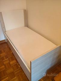 Incluso materasso AirCuddle con coprimaterasso 3 strati, ulteriore coprimaterasso impermeabile, paracolpi 3 lati come da foto, due completi letto e un copripiumino con piumino abbinato al paracolpi.