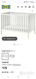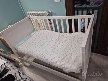 Vendo culla ikea trasformabile in lettino,compreso di materasso, coprimaterasso, piumino e copripiumino come in foto. Tutto come nuovo. Prezzo totale 130