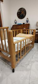 Vendo lettino culla Foppapedretti in legno come da foto in buone condizioni. Con sponde regolabili, con ruote e materasso. Cassetto inferiore per riporre lenzuola. con piccola lesione ma funzionante Inoltre aggiungo materasso nuovo costruito su misura misura 124cm x 62 cm x 16 cm di spessore