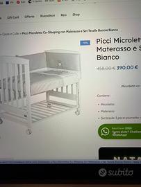 Microletto bimbi che fa anche da next to me pari al nuovo con materasso incluso marca picci. Modello bonnie