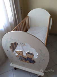 Culla con disegno dipinto a mano acquistata da Martone,corso Umberto I Napoli con rete e materasso inclusi. La parte trasparente è in plexiglas.