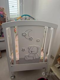 Vendo culla nuovissima, praticamente inutilizzata, compresa di materasso e trapuntino (come foto) e paracolpi in abbinato. Ho allegato anche la ricevuta di acquisto (che erroneamente avevo strappato).