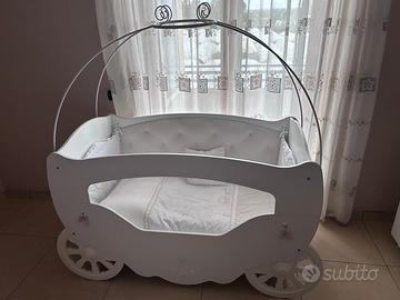 Vendo culla in ottimo stato completa di materasso intatto, paracolpi, cuscino arredo, trapuntina, velo e plaid… tutto abbinato e in perfette condizioni. La culla è molto spaziosa, elegante e particolare. È lunga 1,60 e larga 0,75 cm. I bambini possono starci comodamente per molto tempo. Inoltre, regalo anche paracolpi e trapunta invernale per femminuccia.