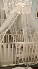 culla pali usata ma in ottime condizioni unico difetto sulle staffe. vendo completa di tenda se serve regalo anke treccia x neonate rosa e grigia