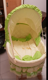 Vendo CESTA/CULLA per neonati modello "APINE" con struttura con ruote in legno e tessuto perfettamente conservato. La Culla presenta decorazioni in giallo e verde (tema api) ed è tenuta in condizioni impeccabili (Pari al nuovo). E' stata utilizzata per pochissimi giorni. La vedo fornita anche di materassino. Disponibile per invio o ritiro a mano.