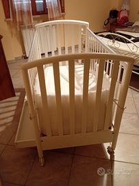 Lettino con sbarre completo di materasso e cassetto sotto in ottime condizioni usato poco perché nella casa al mare. Marca pali tutto bianco. Consegna a mano a Follonica e prezzo leggermente trattabile.