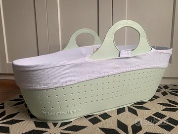 Perfetta per l’estate, con telo in cotone e fori per l’aereazione per evitare soffocamenti. Ha una struttura in legno per trasformarla in dondolo ma può essere posata a terra come in foto. Marca Tommee tippee. Ho anche lenzuola. Per vendita a distanza ci si può accordare