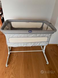 Culla nex to me chicco … ottime condizioni , usata pochissimo..perfetta per far dormire neonato accanto al lettone .. la spondina lalerale è regolabile puó essere rialzata e ribassata con una sola mano …. Tutto sfoderabile e lavabile in lavatrice , per facilitare la manutenzione..