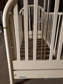 Culla neonato Foppapedretti con materassino incluso , color avorio con particolari color oro con ruote girevoli . Presenta su due ruote poggianti segni di usura