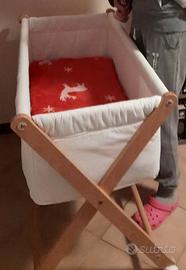 Culla con struttura a forbice in legno ottima per i primi mesi del neonato grazie alla sua compattezza e facilità di spostamento.