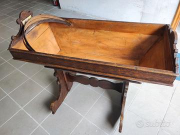 Vendo culla originale del 1940, in legno massello, completa di struttura basculante, di supporti laterali e archetti superiori (per tenda o copertura), come visibile in foto.