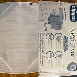 Vendo next 2 me in ottime condizioni. Core beige con interno fantasia. Completo di cinghie per ancoraggio. Vendo insieme anche copri materasso Chicco antisoffoco, copri materasso in cotone Chicco e due lenzuola Chicco con angoli. Regalo zanzariera per la culla, lievemente ingiallita ma perfettamente funzionale.