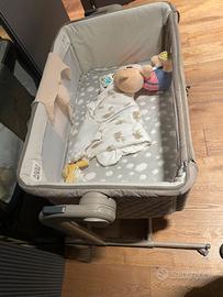 Culla per i primi 6/9 mesi da mettere attaccata al lettone, come se fosse un prolungamento del letto, ma anche staccabile e trasportabile. Corredata di materassino.