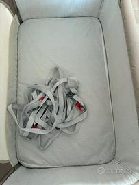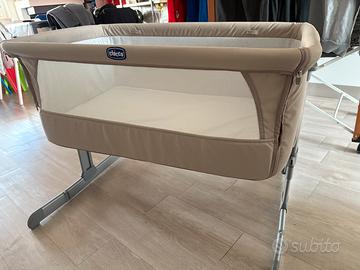 Vendo culla next to me della chicco, usata ma in buone condizioni, colore beige. È completa di lenzuoline, cinghie per agganciarla al letto e borsa per contenerla chiusa e portarla in viaggio. Ritiro Frosinone.