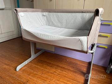 Sono presenti due piccoli difetti (foto 5 e 6) che non vanno a inficiare l’utilizzo, una gamba è graffiara e su un lato della culla il tessuto è segnato dal braccio di una giostrina che era stara montata.