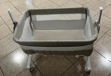 Composta da una struttura metallica regolabile in altezza - una navicella con sponde in rete tradpirante - una sponda la terale apribile per il co-sleeping e piedini con ruote.