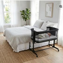 Culla next to me marca Deryan colore nero completa di materassino. Nuova, mai aperta, ancora imballata Dimensioni: 69 x 94 x 81 cm