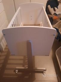 Usata pochissimo, doghe in legno per una perfetta traspirabilità, misure più grandi di una next to me classica, possibilità di abbassare un lato e legarlo al letto con le cinghie, ruote bloccabili, varie altezze e inclinazione anti reflusso. Fino a 15 kg. Misure in cm: Lunghezza 98 Larghezza 53 Altezza da 80 a 92,5. Ritiro in loco.